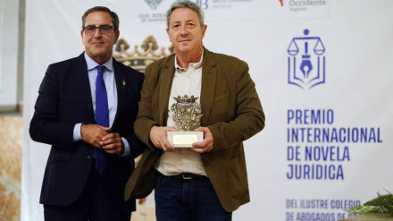 El escritor emeritense recibe el galardón literario otorgado por el Colegio de Abogados de Granada por un trepidante thriller