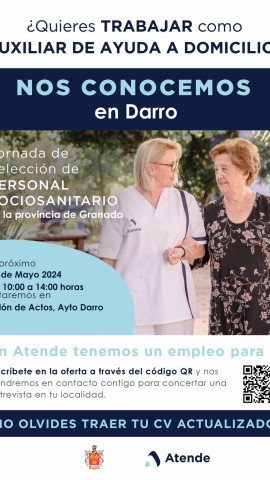 El próximo lunes 20 de mayo se realizarán entrevistas en el Salón de Actos del Ayuntamiento de Darro por la oferta de empleo