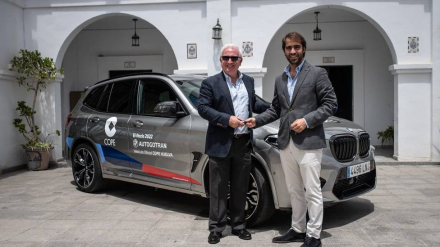 El director de COPE Huelva, Nacho González, recibió de manos del gerente de Autogotran, Ricardo Hueso, las llaves de un BMW X3M Competition con el que COPE cubrirá este Rocío 2022.