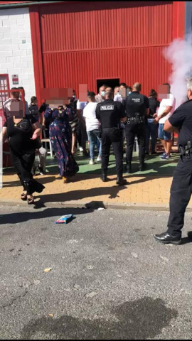 Ni mascarillas, ni distancia social ni niguna medida. Esto se encontró la Policía Local de Almonte este domingo por la tarde en una nave de un polígono industrial.