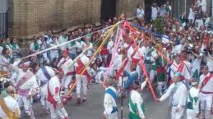 Era el sonido más esperado esta mañana, el de los danzantes bailando a las puertas de la Basílica de San Lorenzo, minutos antes de las ocho y media de la mañana