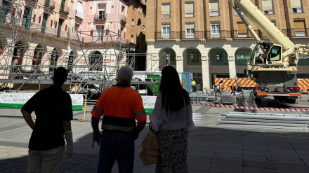 Los Servicios Generales del Ayuntamiento de Huesca trabajan en el desmontaje de las infraestructuras