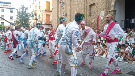 Multitudinaria asistencia a la primera actuación de los danzantes en las fiestas de Huesca