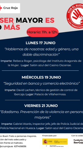 El 15 de junio se celebra el Día Mundial Contra el Maltrato y Abuso a Mayores. Cruz Roja Huesca organiza un ciclo de charlas a partir del 17 de junio para visibilizar esa violencia