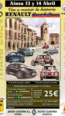 Aínsa convierte su Castillo Medieval en una exposición de coches clásicos y deportivos de Renault