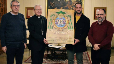 El Obispo de Jaén recibe la pintura del escudo de la Diócesis