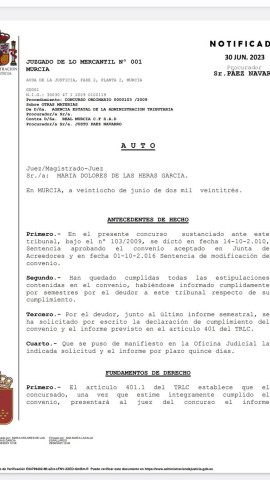Según el club, el juzgado de lo mercantil número 1 de Murcia dictó el auto de cumplimiento del concurso de un club "más vivo que nunca"
