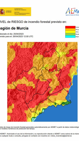 Extremo en la Cuenca de Mula, Guadalentín y Noroeste; muy alto en el Altiplano, Litoral este y Vega Alta-Ricote-Murcia; y alto en el Litoral oeste