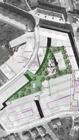 En la manzana interior entre la Avenida de Galicia, la calle Pintor Fierros y la calle Daniel Cortezón