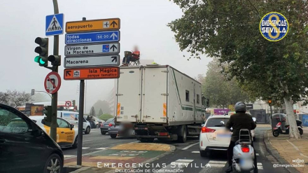 Ha ocurrido casi en pleno centro de Sevilla donde el conductor de origen francés fue descubierto por agentes de la Policía Local subido al techo del vehículo