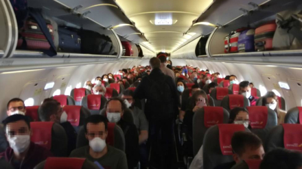 Se han suprimido las revistas y el catering, sólo los baños de atrás están disponibles y se intenta que los pasajeros entren al aparato guardando las distancias
