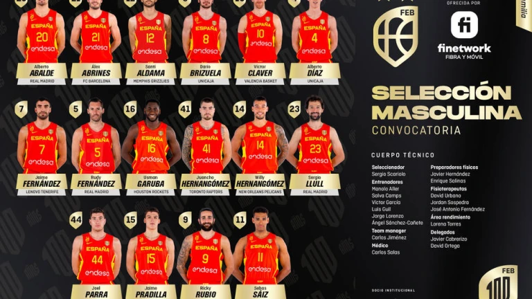Abalde, Abrines, Aldama, Brizuela, Claver, Alberto Díaz, Jaime Fernández, Rudy Fernández, Garuba, Juancho, Willy, Llull, Joel Parra, Pradilla, Ricky Rubio y Sebas Saiz, convocados.