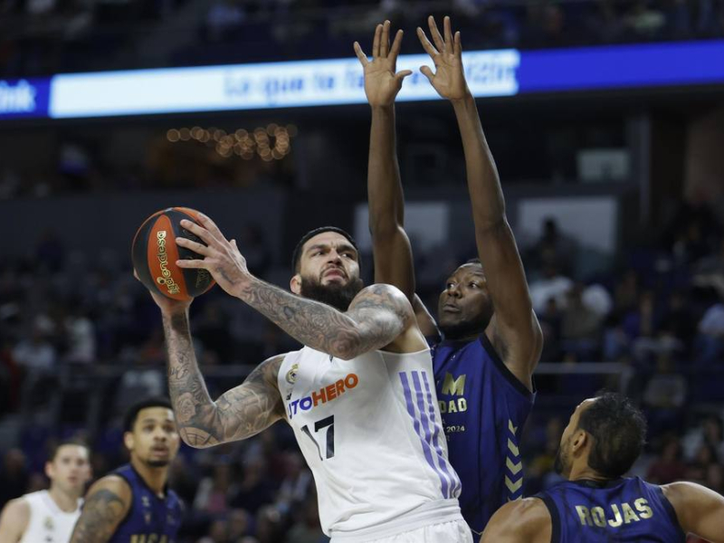 El Real Madrid ganó con mucha más facilidad de la esperada, 93-57, a un feble UCAM Murcia que apenas opuso una seria resistencia en los primero instantes del partido. El choque no duró mucho, apenas 7 minutos, el tiempo que tardó el Real Madrid en poner tierra de por medio en el marcador. El UCAM se adelantó en el primer minuto de juego con una canasta de Jordan Davis (1-2) y a partir de ahí el equipo murciado se descosió por completo. En los últimos diez minutos, Causeur pudo acelerar su puesta a punto y Eli Ndiaye tuvo minutos, dando descanso a los más cargados ante una semana de nuevo con doble jornada en Euroliga. El 93-57 final explicó perfectamente el partido.