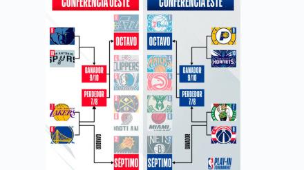 En el Play-In del Oeste se jugará el Spurs-Memphis. El ganador, al perdedor del Lakers-Warriors. En el Este, el Hornets-Pacers y el ganador, al perdedor del Wizards-Celtics.