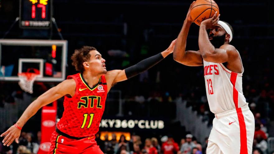 Harden logró 41 puntos, 10 rebotes y 10 asistencias en la victoria de los Rockets ante los Hawks de Trae Young (42 puntos, 13 rebotes y 10 asistencias).