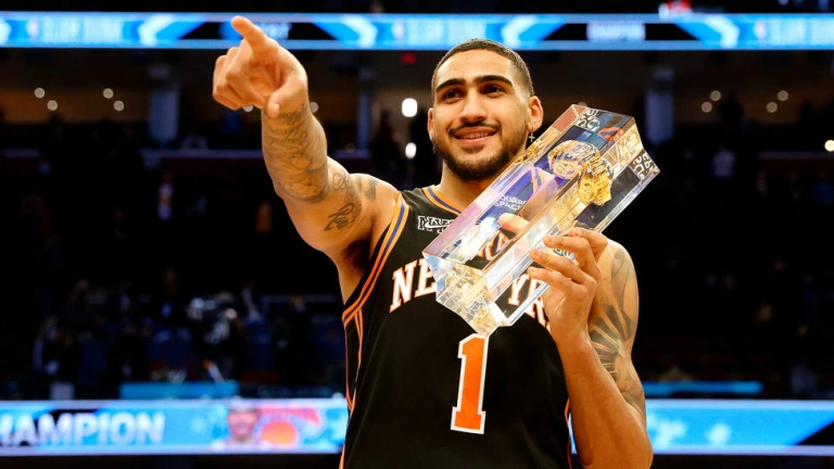 Obi Toppin, de los New York Knicks, voló alto para hacerse con el concurso de mates en el All Star de la NBA.
