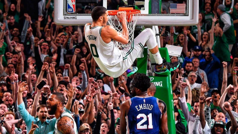 Jayson Tatum aportó 21 puntos y lideró la remontada de 22 tantos de los Celtics de Boston en el segundo partido de las semifinales de la Conferencia Este que disputaron ante los Sixers a los que vencieron por 108-103. El triunfo permitió a los Celtics ponerse con ventaja de 2-0 en la serie que disputan al mejor de siete.