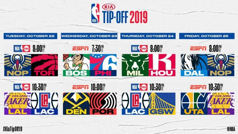Los primeros choques del campeonato tendrán varios atractivos ya que los Lakers de LeBron James y reforzados por Anthony Davis se verán las caras con los Clippers de Kawhi Leonard, campeón el año pasado con Toronto y 'MVP' de las Finales, y Paul George, si este se ha recuperado de su lesión en el hombro.