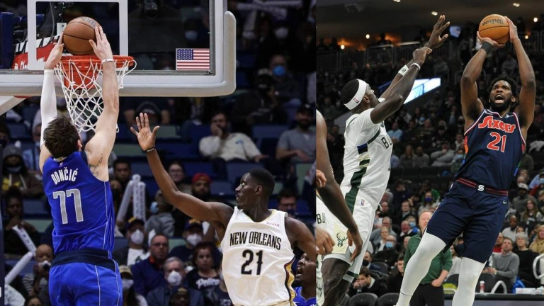 Embiid se impone a Antetokounmpo; Doncic se regala otra gran noche y le clava 49 puntos a los Pelicans