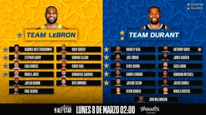 El entrenador de los Sixers de Filadelfia, Doc Rivers, será el responsable de dirigir al Equipo de Durant, mientras que Quin Snyder, del Utah Jazz, se encargará de estar en el banquillo del Equipo de James.