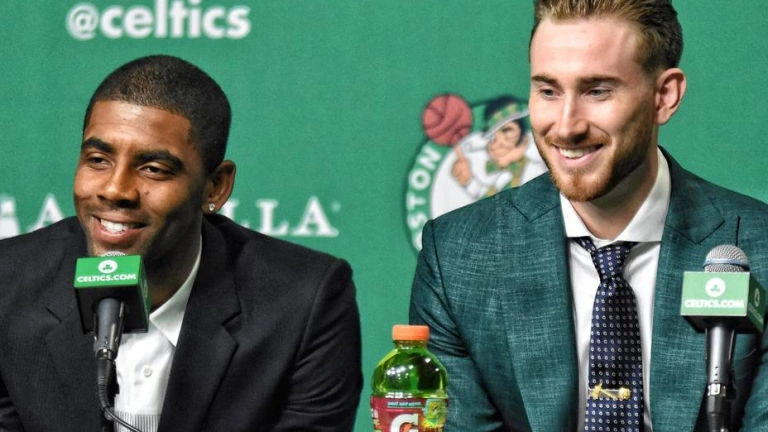 Los Celtics presentaron formalmente a Irving y a su nuevo compañero el alero Gordon Hayward, también una adquisición de verano, al que lograron como agente libre después de rechazar la oferta de los Jazz de Utah, su antiguo equipo. Ambos se presentaron sonrientes en el TD Garden y convencidos que pueden ayudar al equipo a ser aspirante a luchar por un título de liga.