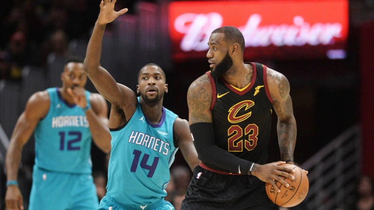LeBron James obtuvo 27 puntos, 16 rebotes y 13 asistencias, mientras que J.R. Smith anotó la canasta que selló el triunfo a falta de 48 segundos del tiempo reglamentario y los Cavaliers de Cleveland alcanzaron las siete victorias seguidas al vencer 100-99 a los Hornets de Charlotte.