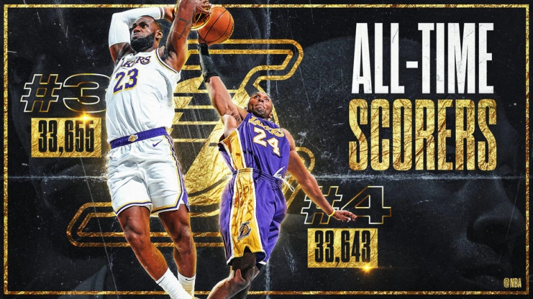 El jugador de los Lakers superó a Kobe Bryant en el partido ante los Sixers. Así, sube al podio de los máximos anotadores históricos con 33.655 puntos