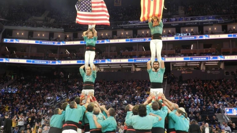 Los Castellers de Vilafranca, que esta semana están haciendo una serie de exhibiciones en California, han mostrado una 'estelada' -bandera independentista de Catalunya- en el partido entre Golden State Warriors y los Minnesota Timberwolves en el Chase Center de San Francisco.