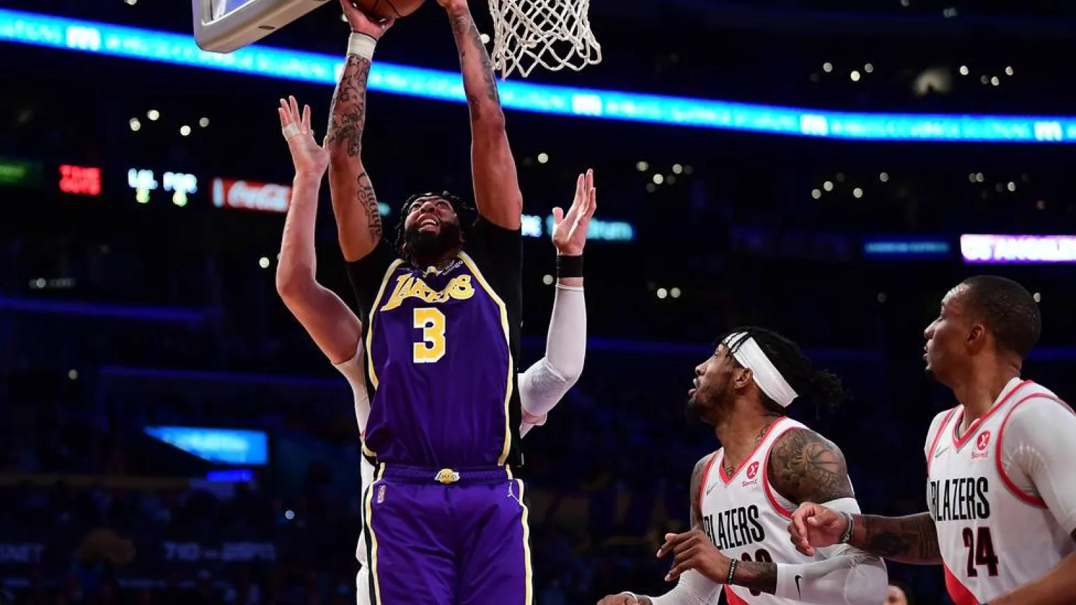 En un partido de poco brillo y escasa puntería, Carmelo Anthony (24 puntos, con 8 de 12 en intentos, y 8 rebotes) y Anthony Davis (30 puntos y 15 rebotes) consiguieron doblegar a unos Portland Trail Blazers liderados por Norman Powell (30 puntos y 5 rebotes). LeBron James se perdió su cuarto partido consecutivo por molestias en la rodilla, pero los Lakers lograron romper su racha de tres derrotas seguidas.
