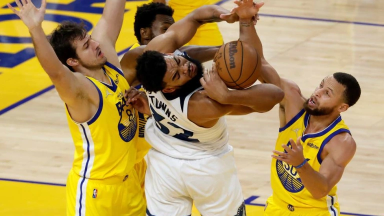 Klay Thompson (23 puntos con 5 de 9 en triples) y Andrew Wiggins (19 puntos con 5 de 8 en triples) también brillaron en unos Warriors en los que el mexicano Juan Toscano-Anderson jugó 2 minutos y aportó una asistencia. El estadounidense de ascendencia dominicana Karl-Anthony Towns firmó un gran partido para los Wolves y consiguió 31 puntos (12 de 22 en tiros), 13 rebotes y 6 asistencias en 36 minutos. Anthony Edwards sumó 27 puntos, 6 rebotes y 6 asistencias pero tuvo una mala noche desde el triple (2 de 11).