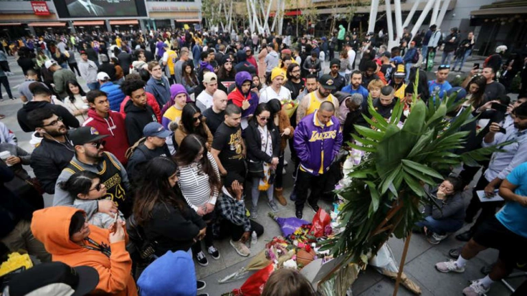 Cientos de seguidores del exjugador de los Lakers de Los Ángeles, Kobe Bryant, se concentraron este domingo a la afueras del Staples Center, testigo de alguna de sus mejores actuaciones, en señal de luto por la estrella, quien falleció de forma trágica en un accidente de helicóptero.