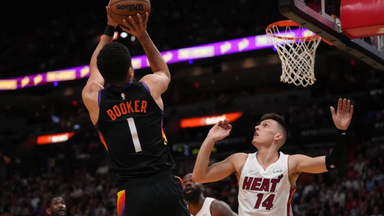 Los Phoenix Suns lograron un autoritario triunfo en el campo de los Miami Heat, en un choque entre los líderes del Oeste y del Este, respectivamente, en el que emergió Devin Booker, de regreso tras cuatro partidos de baja, con 23 puntos, 9 asistencias y 8 rebotes. Los Suns, todavía sin el lesionado Chris Paul, recuperaron a Booker tras su ausencia forzada por el protocolo sanitario de la NBA y su estrella no tardó en recuperar protagonismo apoyado por los 21 puntos y 9 rebotes de Mikal Bridges.