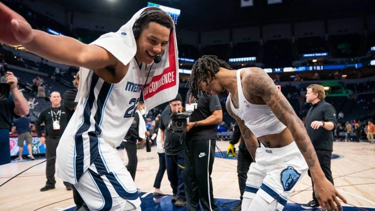 En el último minuto y medio del partido, un triple de Tyus Jones y un mate de Jaren Jackson Jr. resultaron fundamentales para que Memphis sellara la victoria en un desenlace muy apretado. En los Wolves, Anthony Edwards (30 puntos, 5 rebotes y 5 asistencias) y Jaden McDaniels (24 puntos con 5 de 6 en triples) fueron los más destacados. El dominicano-estadounidense Karl-Anthony Towns sumó 18 puntos, 10 rebotes y 4 asistencias para Minesota. La semifinal del Oeste entre Warriors y Grizzlies comenzará este domingo en Memphis.