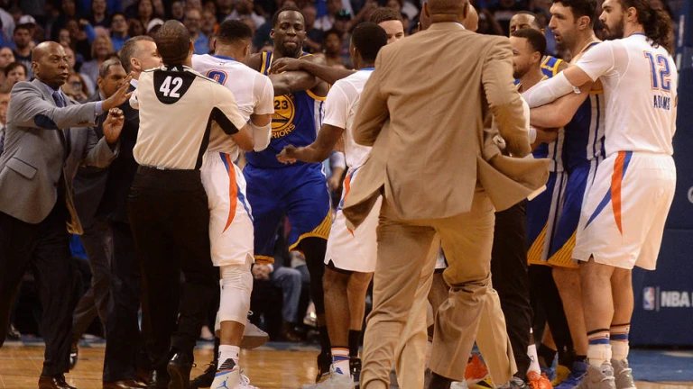 Curry también protagonizó empujones con el base novato Semaj Christon antes que concluyese la primera parte y ambos recibieron faltas técnicas. Luego llegaría el enfrentamiento entre el base estrella de los Thunder, Russell Westbrook, y el ala-pívot Draymond Green, de los Warriors, que también recibieron las correspondientes faltas técnicas por parte de los árbitros, que les tocó hacer trabajo extra.