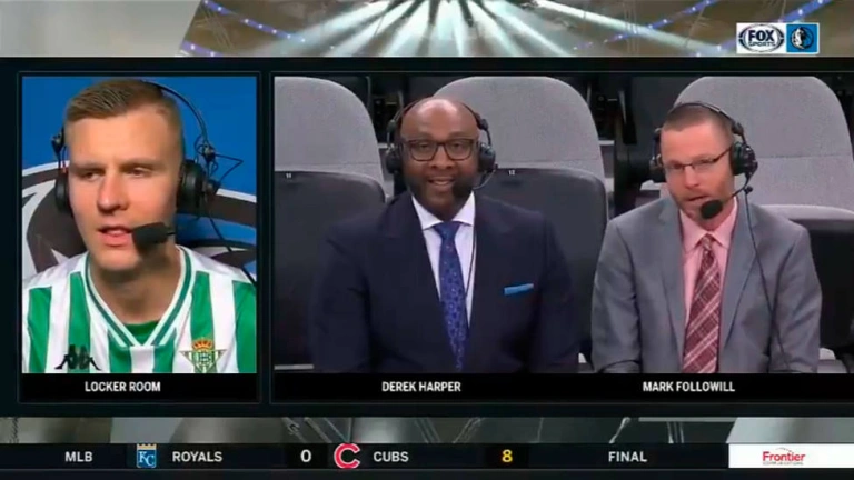 En las imágenes facilitadas por el Betis, el ala-pívot viste la camiseta del Betis y, después de que los entrevistadores destacaran que hacía historia por ser el primer jugador en vestir la verdiblanca en el canal televisivo, éste besó el escudo de las trece barras.