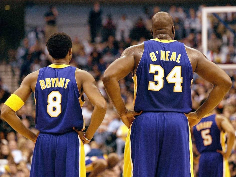 Kobe Bryant y Shaquille O'Neal en un partido con Los Ángeles Lakers