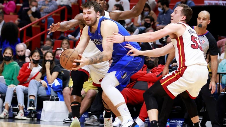 Los Mavs, con doble-doble del esloveno Luka Doncic, pusieron fin a la racha de cinco victorias consecutivas de los Miami Heat, líderes del Este ahora empatados con los Chicago Bulls, en un día en el que el equipo texano de Jason Kidd anotó hasta 18 triples en 41 intentos.