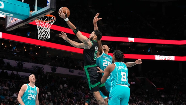 El líder de los Celtics rompió la barrera de los cincuenta puntos por quinta vez en su carrera y anotó 18 en el cuarto período, clave para frustrar los intentos de remontadas de unos orgullosos Hornets. Su partido acabó con tres triples consecutivos para 51 puntos, con nueve rebotes y cinco asistencias, en un día en el que los Celtics no pudieron contar con Jaylen Brown, baja por lesión.