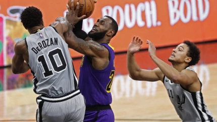 DeMar DeRozan logró 36 puntos, 8 rebotes y 9 asistencias y lideró a los Spurs de San Antonio a vencer por 133-120 a Los Angeles Lakers, que rompieron una racha de cuatro triunfos consecutivos. DeRozan anotó 11 puntos en el cuarto periodo, cuando los Spurs lograron un parcial de 44-21, que les permitió completar una remontada de 15 tantos que tuvieron abajo en el marcador.