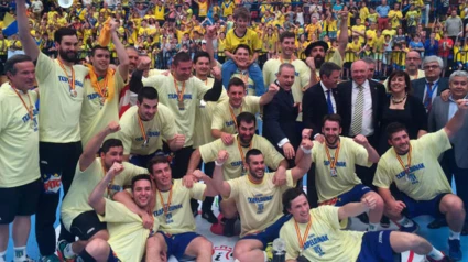 Los jugadores del Bidasoa celebrando el ascenso a la Liga Asobal (FOTO - @CDBidasoaIrun)