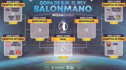 El WiZink Center de Madrid acogió este jueves el sorteo de la 'Final a 8' de la Copa del Rey de balonmano, que se disputará en el recinto capitalino del 5 al 7 de marzo, con el Barça, actual campeón, emparejado con el Logroño La Rioja en los cuartos de final de un torneo que será el primero de la capital al que pueda asistir público.