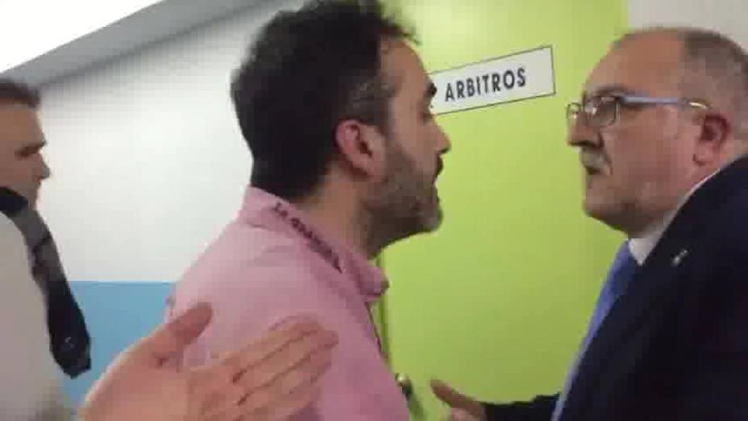 Lo que no es de recibo es que un Presidente de ningún club entre al vestuario de los árbitros bien sea antes, durante o después de un partido. Los colegiados tienen que tener su intimidad y si se me permite su protección del ambiente que les rodea todo lo que se pueda para que nadie pueda decir nada ni crear ninguna suspicacia. Pero es que en aquél partido había presencia federativa como era la del Delegado de Mesa, Miguel Ángel Bombín Alonso, que o no supo estar en su sitio para que aquello no se produjera y desde luego por lo que se ve en las imágenes no hace muchos amagos de decirle al Sr. Camiña que salga del vestuario arbitral. ¡Que un Presidente de un club entre en el vestuario de los colegiados y más con todo lo que había en juego NO ES NORMAL!