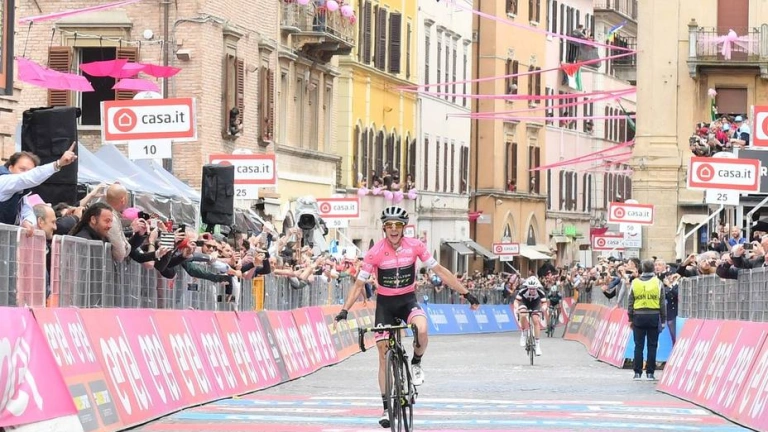 Yates, de 25 años, volvió a lucirse con la maglia rosa en sus espaldas, con un vuelo rasante en el muro que conducía a meta que doblegó a todos sus rivales. Su latigazo le permitió firmar su segunda victoria con un tiempo de 3h.25.53. A su rueda, a 2 segundos, Tom Dumoulin, llamado a protagonizar el duelo estelar del Giro hasta Roma con el líder británico.