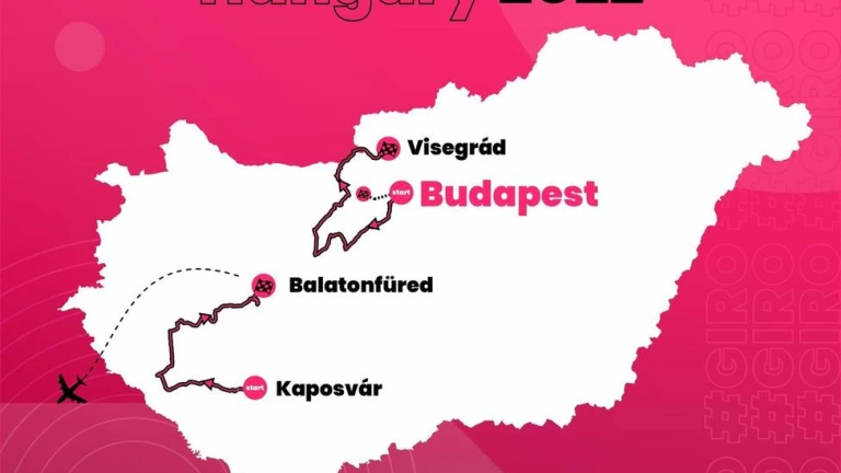 En la etapa inaugural, el 6 de mayo de 2022, el Giro partirá de Budapest y llegará al alto de Visegrád tras 195 kilómetros llanos, con dos sprints bonificados, hasta la subida final de 5 kilómetros al 5 por ciento de pendiente media hasta el castillo de la localidad.