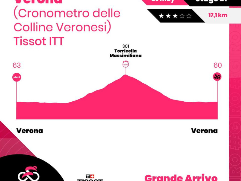 21ª etapa. 29 de mayo: Verona-Verona (CRI), 17 kilómetros.