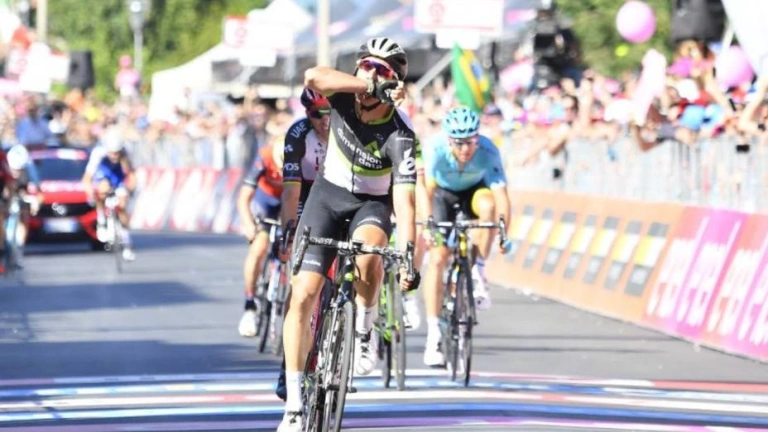 Era la definitiva, la que le permitió descorchar el champán en su primera visita al podio del Giro. Venció por sorpresa, con incertidumbre, en un sprint a tres en el que batió al portugués Rui Costa y al francés Pierre Rolland (Cannondale), los últimos compañeros de aventura.