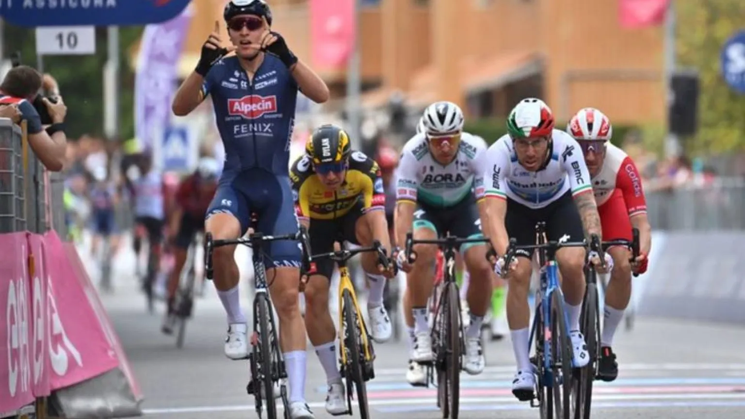 El belga del Alpecin se llevó la victoria en el sprint de Novara. Ganna es más líder al sumar 3 segundos de bonifación.