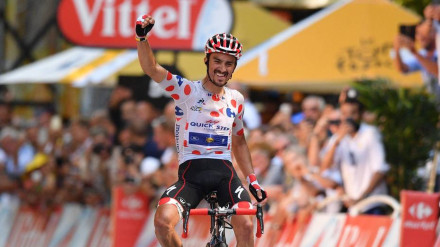 El ciclista de Quick Step realizó el último descenso a una velocidad vertiginosa y aprovechó la caida de Yates que marchaba por delante. Mikel Landa atacó en los metros finales de la subida al Portillon pero fue cazado por el grupo y los Sky en lso primeros metros del descenso.