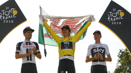 El galés Geraint Thomas consiguió la victoria en el Tour de Francia 2018 al aguantar su ventaja en una crono ganada por Dumoulin, segundo en París. Chris Froome le arrebató la tercera plaza a Roglic.