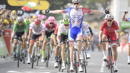 El sprinter francés del Groupama FDJ consiguió la primera victoria de su equipo en el Tour al imponerse en la llegada a Pau a Laporte y Kristoff. Caída de Nairo Quintana en los primeros kilómetros.